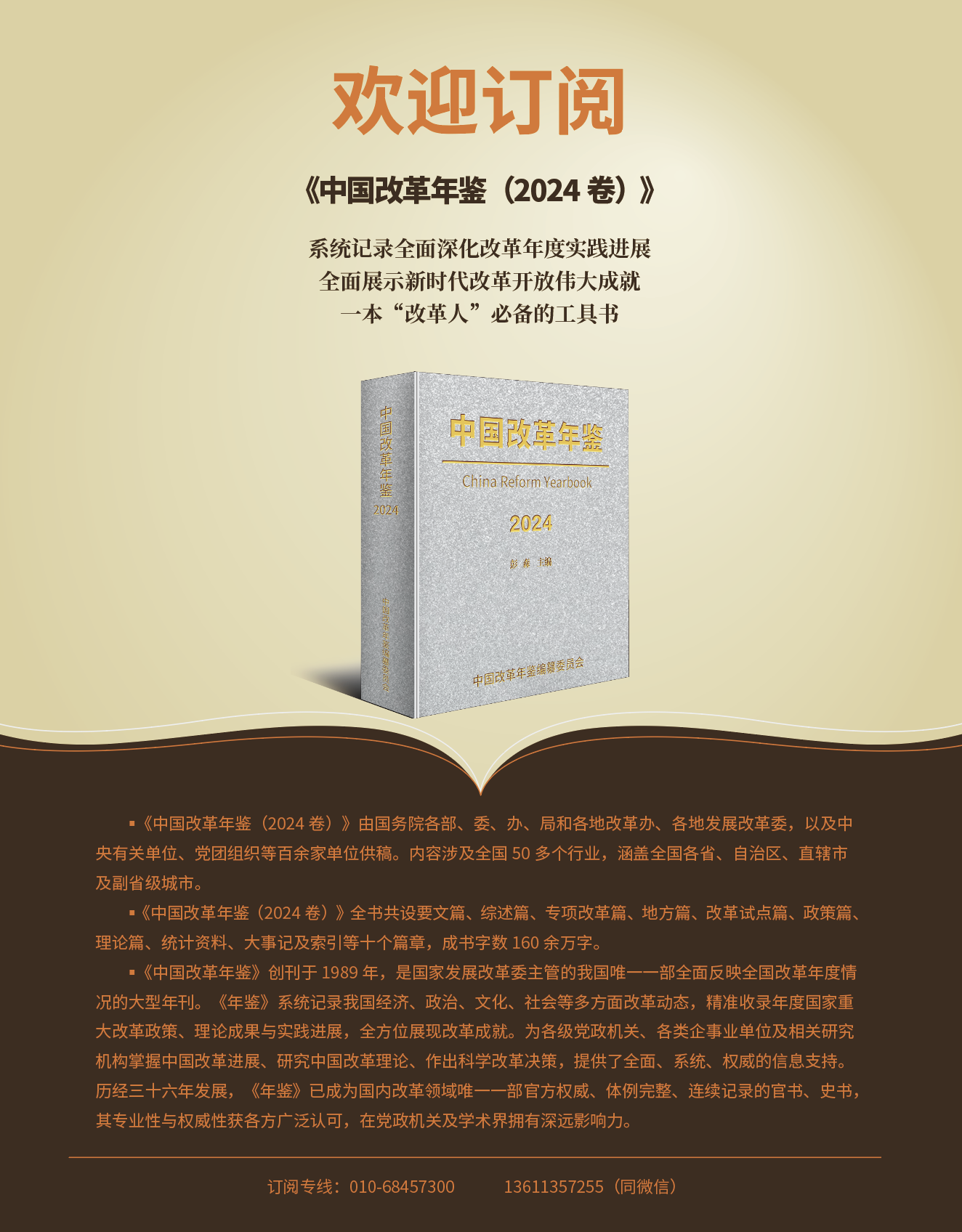 《中國改革年鑒》創(chuàng)辦于1989年,原名《中國經(jīng)濟(jì)體制改革年鑒》。是全面反映中國改革年度進(jìn)展情況的國家級大型年刊。
