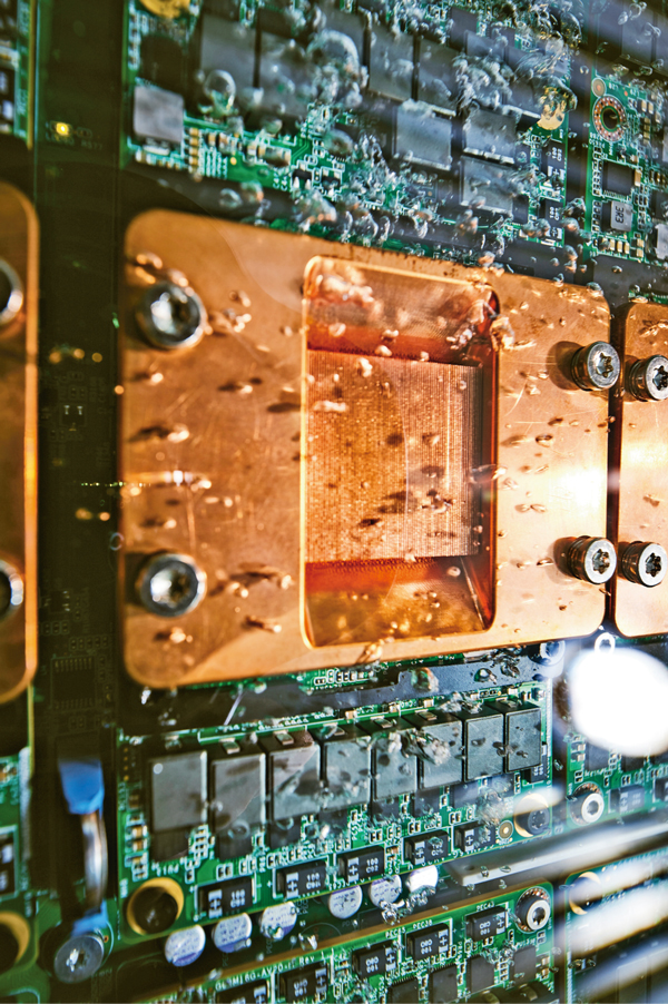 數(shù)字經(jīng)濟(jì)對(duì)經(jīng)濟(jì)社會(huì)的引領(lǐng)帶動(dòng)作用日益凸顯。圖為2021年11月拍攝的液冷計(jì)算節(jié)點(diǎn),能夠?qū)?shù)據(jù)中心能效比PUE降至1.1以下,比傳統(tǒng)風(fēng)冷技術(shù)節(jié)電20%?!≈袊茖W(xué)院供圖