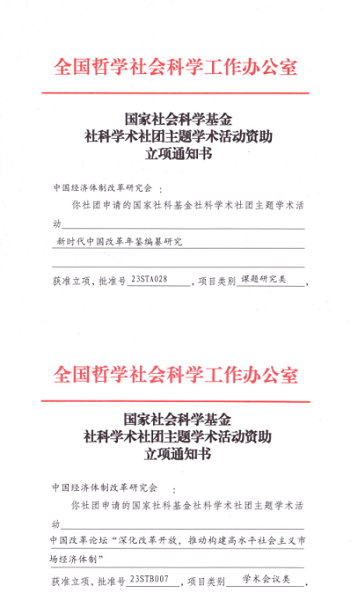 10月12日,我會(huì)收到全國(guó)哲學(xué)社會(huì)科學(xué)工作辦公室立項(xiàng)通知書(shū),我會(huì)主辦的第二十屆中國(guó)改革論壇、《中國(guó)改革年鑒》編纂研究均獲得國(guó)家社科基金社科學(xué)術(shù)社團(tuán)主題學(xué)術(shù)活動(dòng)資助,這是五年來(lái)我會(huì)第十二次獲得國(guó)家社科基金立項(xiàng)支持。這十二次支持涵蓋社科基金重大項(xiàng)目、社科學(xué)術(shù)社團(tuán)課題研究類(lèi)資助、社科學(xué)術(shù)社團(tuán)學(xué)術(shù)會(huì)議類(lèi)資助和優(yōu)秀社科學(xué)術(shù)社團(tuán)獎(jiǎng)勵(lì)性補(bǔ)助。