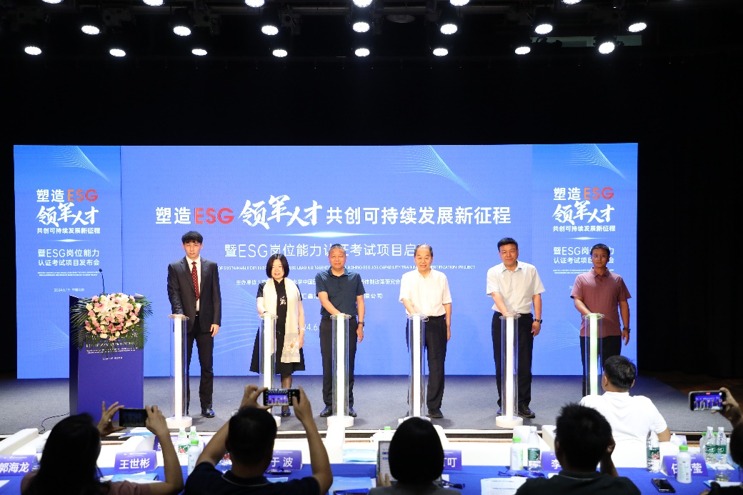 發(fā)布會(huì)最后,趙艾等嘉賓共同參與ESG崗位能力認(rèn)證考試項(xiàng)目啟動(dòng)儀式。