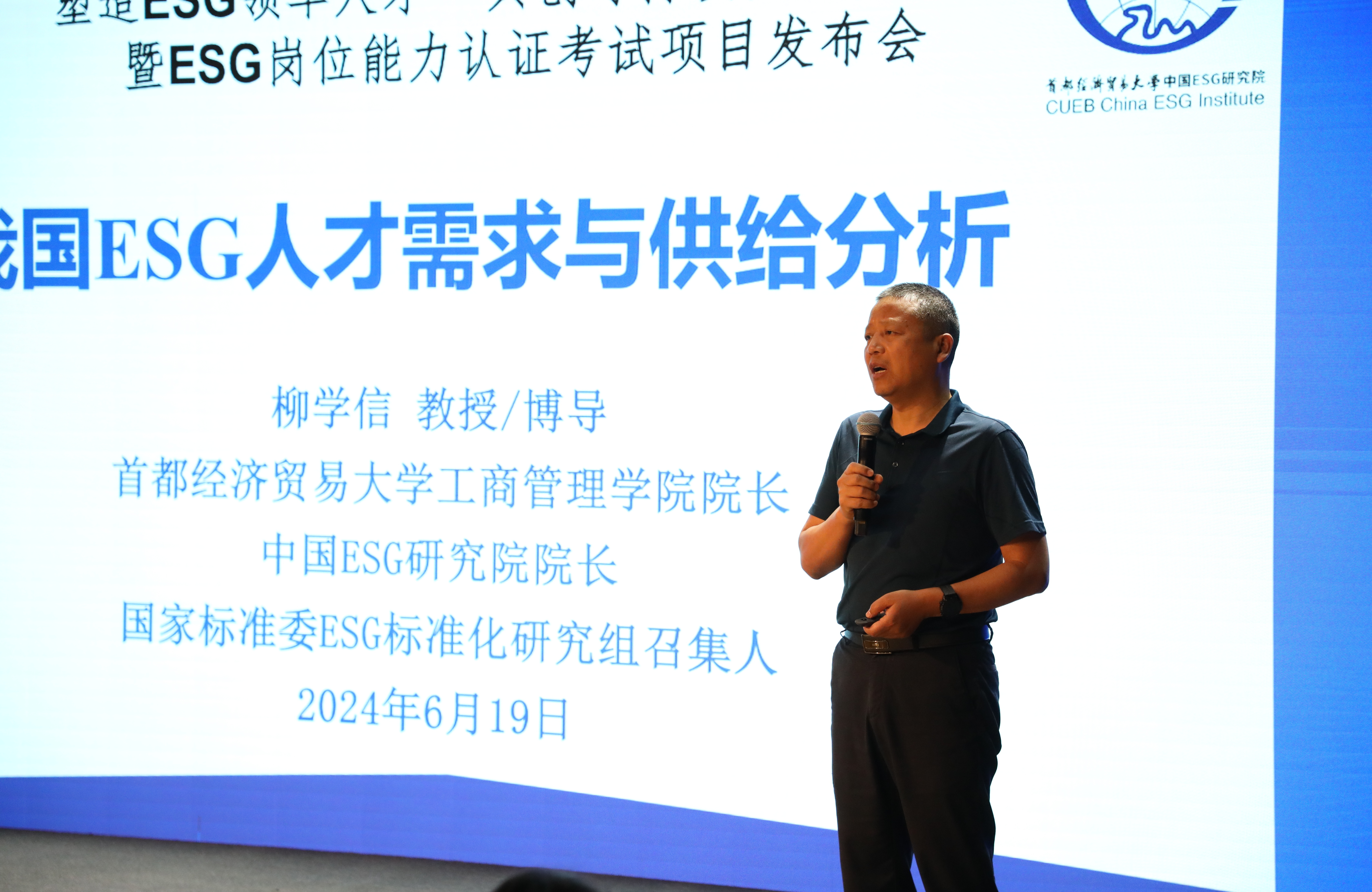 2024年6月19日上午,由首都經(jīng)濟(jì)貿(mào)易大學(xué)中國ESG研究院、中國經(jīng)濟(jì)體制改革研究會(huì)培訓(xùn)中心聯(lián)合舉辦的“塑造ESG領(lǐng)軍人才、共創(chuàng)可持續(xù)發(fā)展新征程暨ESG崗位能力認(rèn)證考試項(xiàng)目發(fā)布會(huì)”在北京國宏大廈成功舉辦。