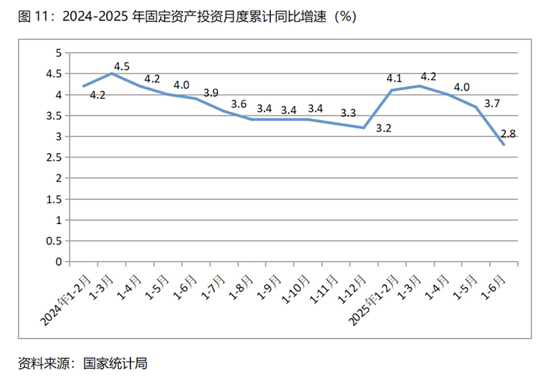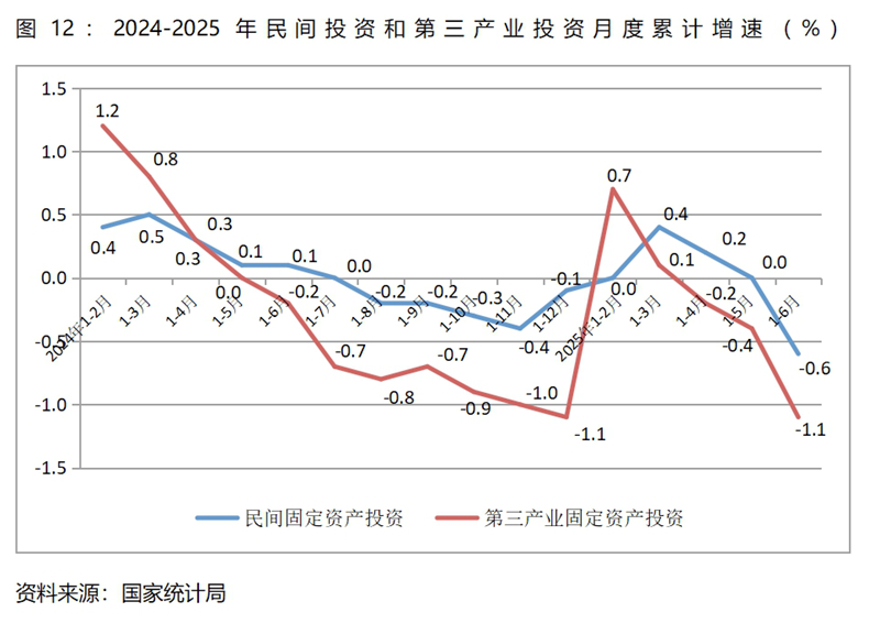 (二)民間投資和第三產(chǎn)業(yè)投資增速均由增長轉(zhuǎn)為下降,餐飲收入增速回落較多。上半年民間固定資產(chǎn)投資同比下降0.6%,一季度為增長0.4%,這是自2023年9月以來月度累計的最大降幅;第三產(chǎn)業(yè)固定資產(chǎn)投資同比下降1.1%,一季度為增長0.1%,這是今年以來月度累計的最大降幅;餐飲收入同比增長4.3%,比一季度增長4.7%回落了0.4個百分點,比上年同期增長7.9%回落3.6個百分點。這些指標增速的變化需引起宏觀調(diào)控政策的高度關注。